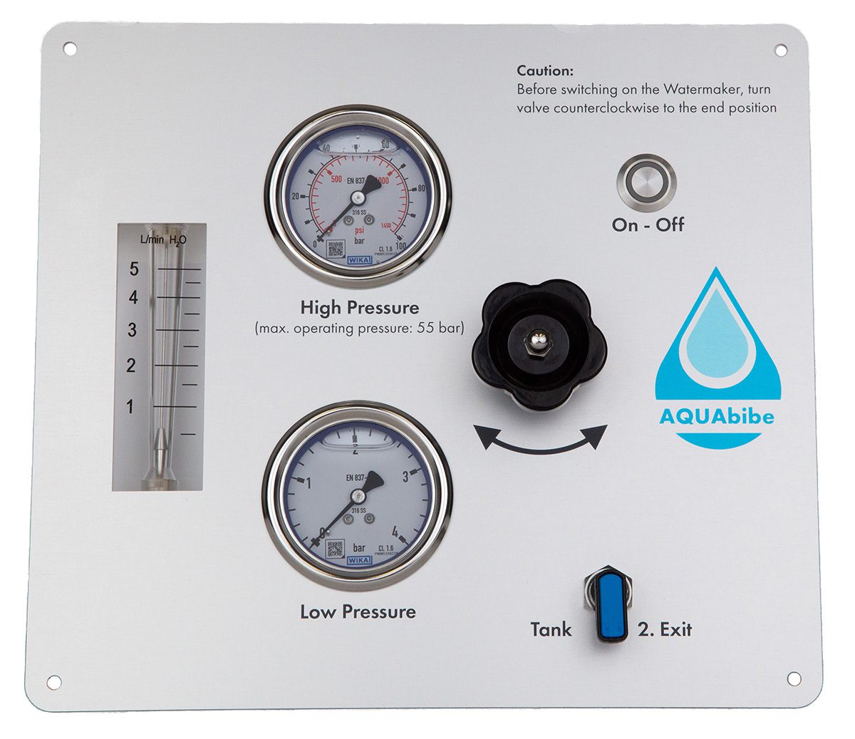 - Control unit with 12V DC control voltage, one pressure gauge, switching between tank and a second fresh water outlet