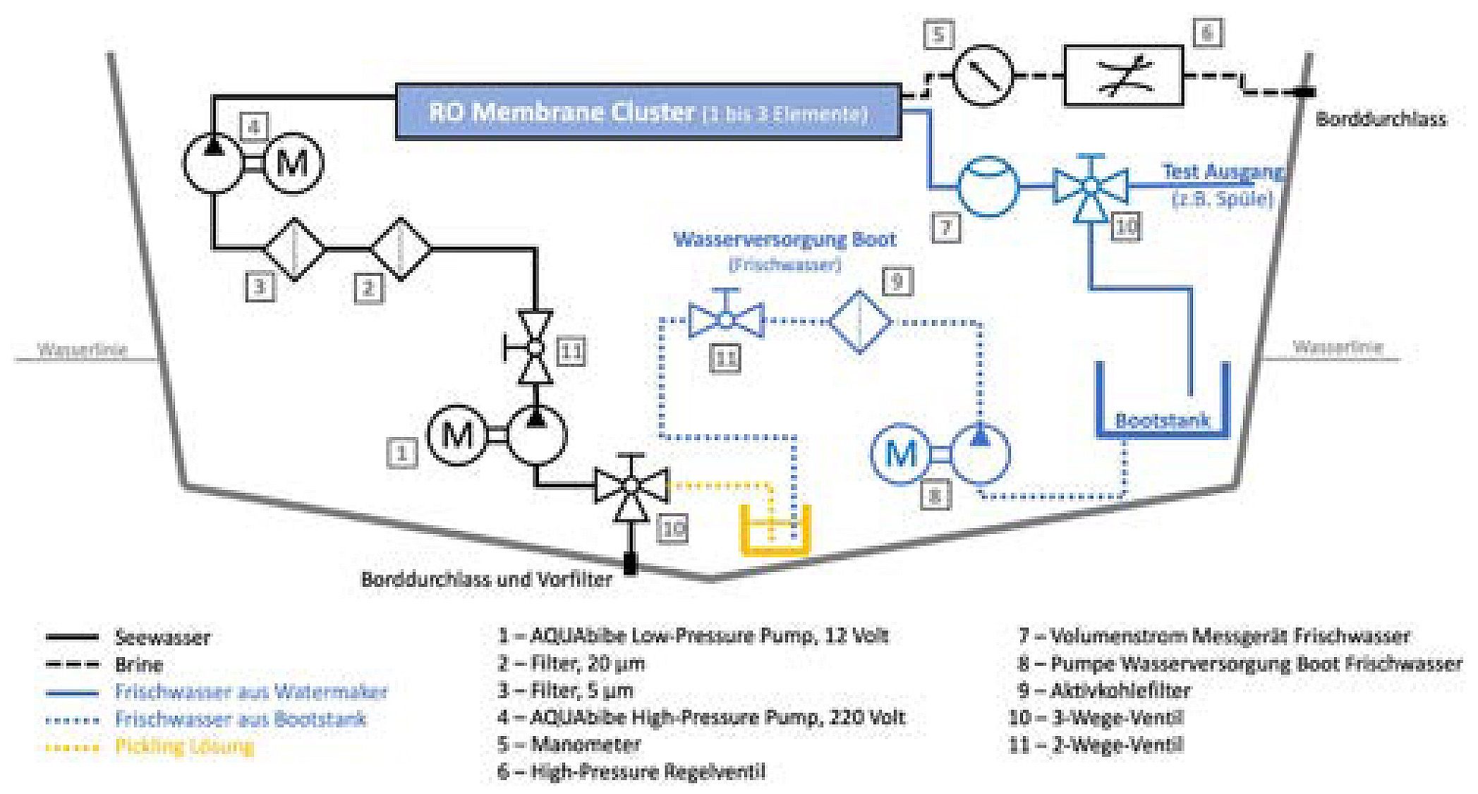 Experience shows that this crew typically uses around 200 liters per day once a watermaker is installed on board. The previously measured water consumption inevitably increases, as water is now available in unlimited quantities.